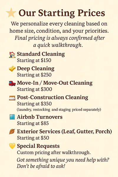 Transparent rates for personalized cleaning services tailored to your home.